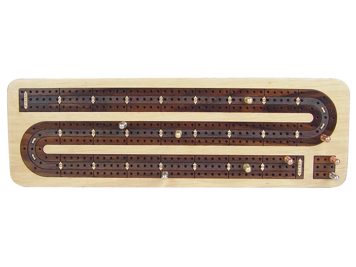 One can't find such gorgeous handmade continuous cribbage board from any other source as this has been developed by our designing and research section with immense dedication. This kind of unique cribbage board with 9 metal pegs and sliding lid storage for cards is being offered for the first time and is hardly available elsewhere.
