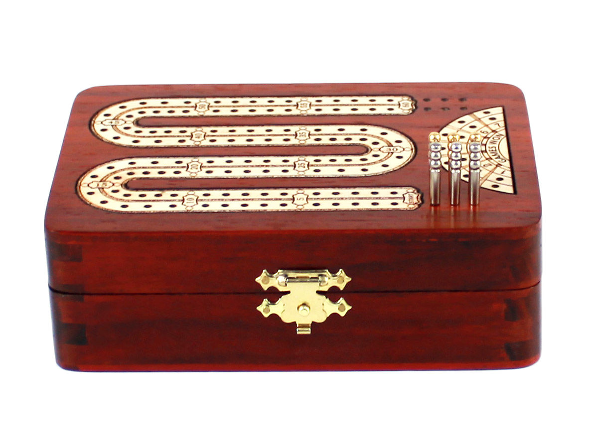 One can't find such gorgeous handmade cribbage board from any other source as this has been developed by our designing and research section with immense dedication. This kind of unique cribbage board with 6 metal pegs and folding box for card storage is being offered for the first time and is hardly available elsewhere.