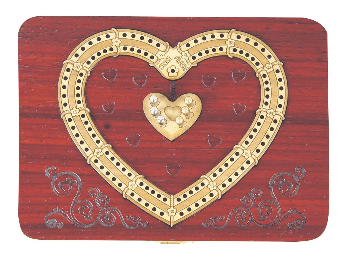 Cribbage Board Store presents exquisite 2 track (60 Points) Heart Shape Non-Continuous Cribbage Board & Box in Flat version. Heart shape cribbage board is an ideal choice to gift someone whom you love on valentines day or on some special occasion. The handmade cribbage board/box is made of Bloodwood and through special inlay process, White Maple tracks are inlaid on the board with great precision.