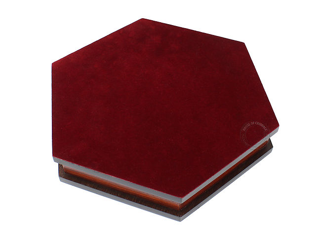 Hexagonal Cribbage Board Continuous 4 Tracks with Drawer Storage and Skunks, Corners and Score Marking Fields - Blood Wood / White Maple