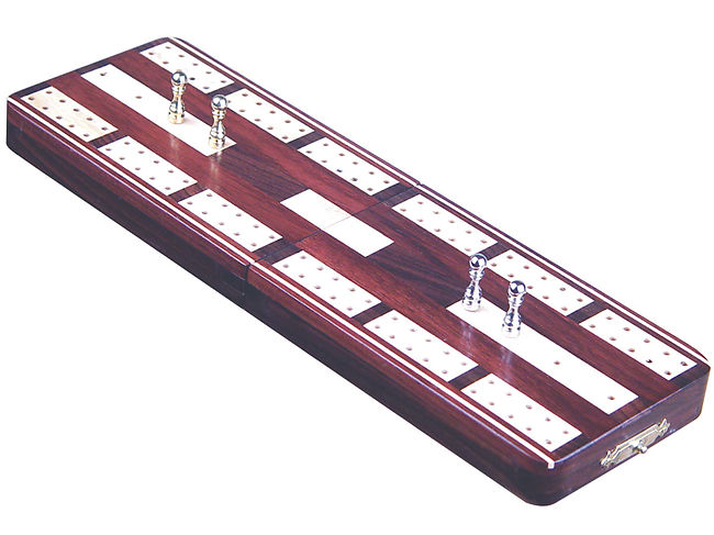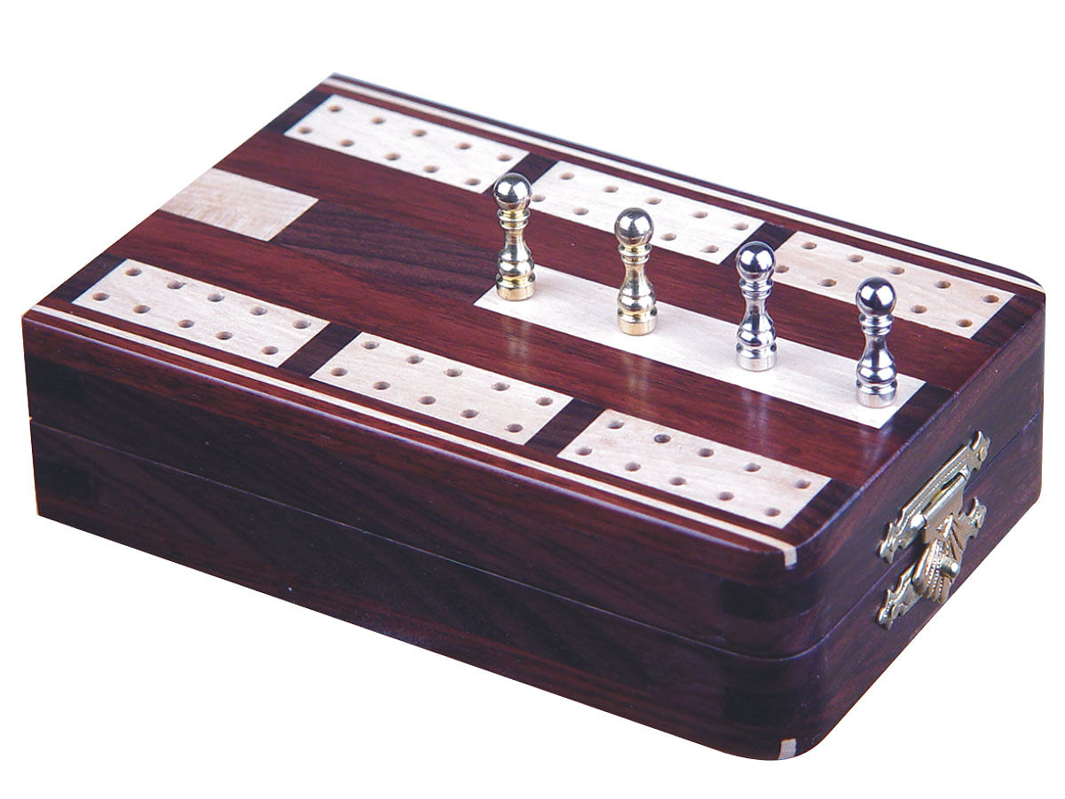 One can't find such gorgeous handmade cribbage board from any other source as this has been developed by our designing and research section with immense dedication. This kind of unique cribbage board with 6 metal pegs is being offered for the first time and is hardly available elsewhere.
