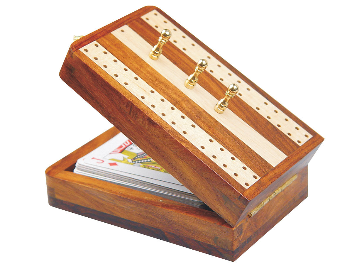 One can't find such gorgeous handmade cribbage board from any other source as this has been developed by our designing and research section with immense dedication. This kind of unique cribbage board with 6 metal pegs is being offered for the first time and is hardly available elsewhere.