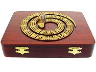 One can't find such gorgeous handmade continuous cribbage board from any other source as this has been developed by our designing and research section with immense dedication. This kind of unique cribbage board with 9 metal pegs and box to store cards is being offered for the first time and is hardly available elsewhere.